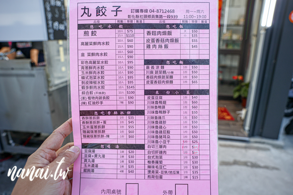 社頭丸餃子菜單/價目表