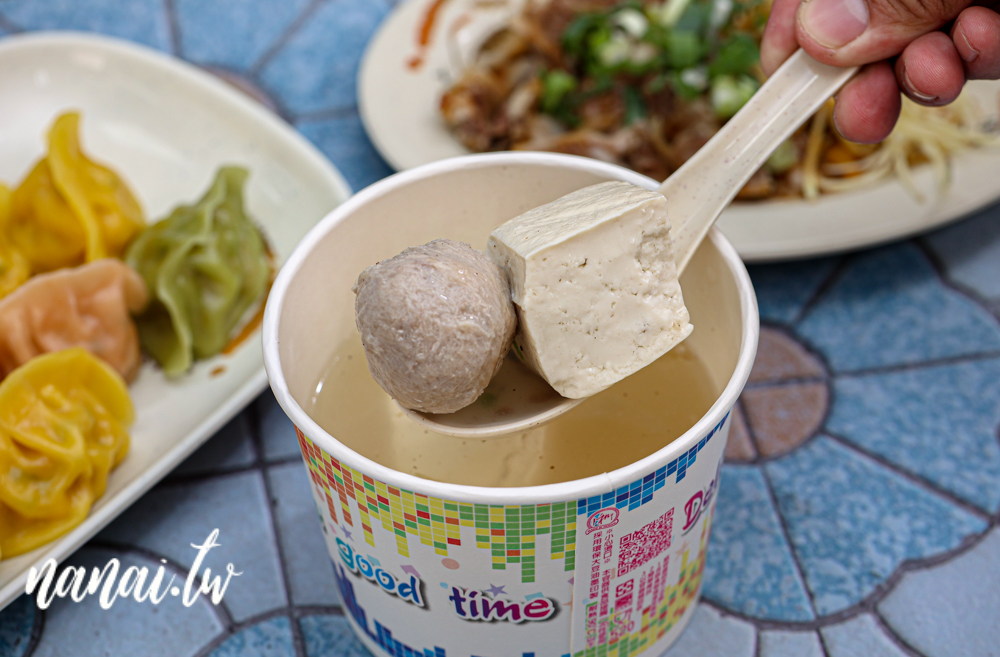 別小看這碗湯!湯底可是用雞骨高湯熬煮而成,清爽中又帶有深層香氣,喝起來比一般湯頭更清甜順口、不油不膩,再搭配扎實彈Q的福茂貢丸與滑嫩的豆腐,簡單卻讓人默默喝光。