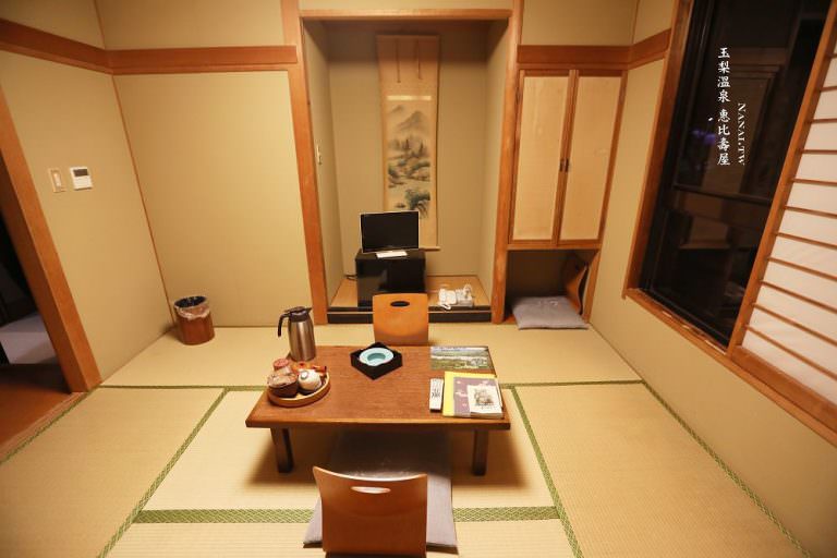 惠比壽屋旅館雖然外觀不是很豪華,但他們的溫泉泉質很不錯,且特別是有個人獨立湯屋,裡面的泉質和露天風呂不太一樣,泡起來很舒服,房間是採和式房,每次來日本最喜歡住這種房型。